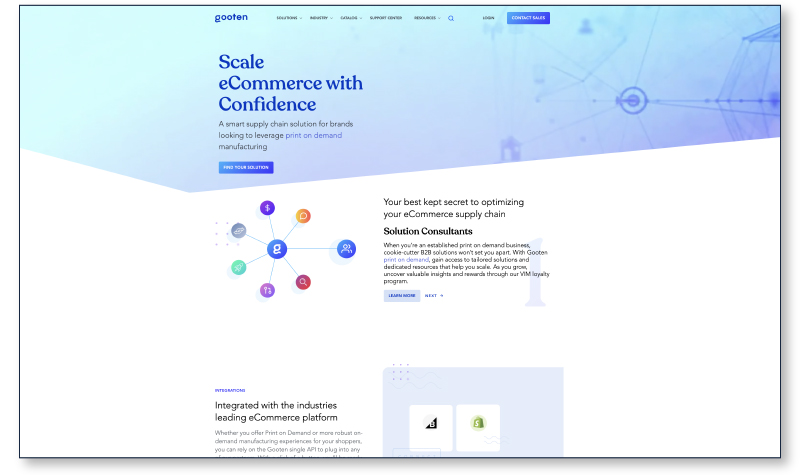INTEGRATIONS: e-commerce platforms: Shopify online marketplaces: Etsy (vis Shopify app), and custom API