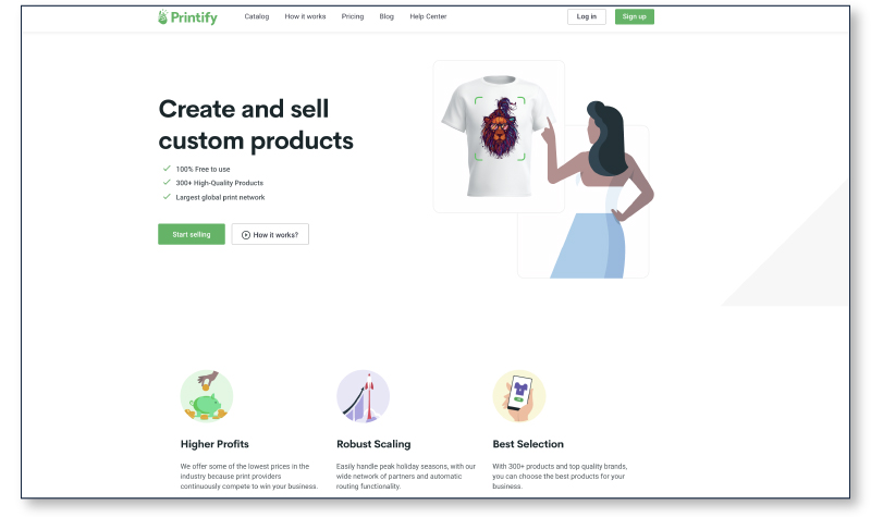 Printify connects eCommerce store owners with a network of print providers around the world, acting as a middleman in product fulfillment and offering more than 200 unique items, including AOP clothing, accessories, plus home and living items. Printify is competitively priced and provides print provider rankings for its global print network.