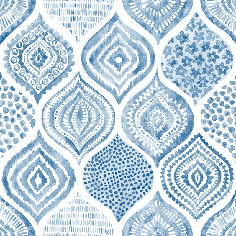 Ogee repeats are similar to diamond repeats - except an ogee is more rounded in the middle while squeezed together at the top and bottom, much like an onion. Its traditional shape usually results in an evenly balanced pattern design, with slight diagonal movement in each direction.